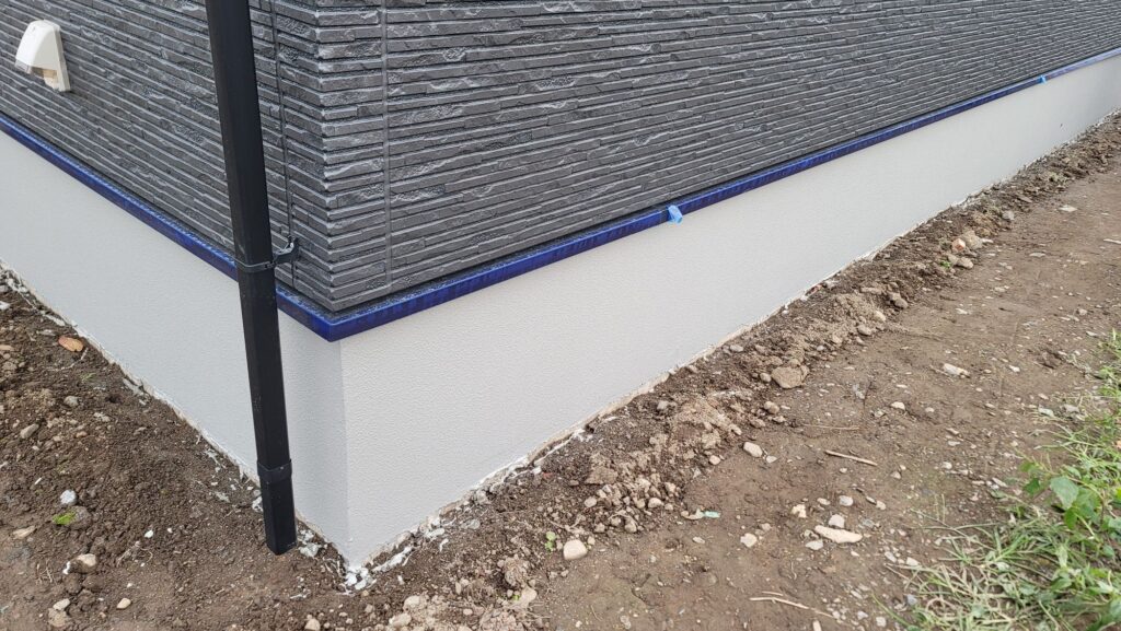 佐野市、玄関タイル、基礎巾木施工をしました。300角コンテⅡ仕様、基礎巾木ファンデーションコートグレー仕上げ